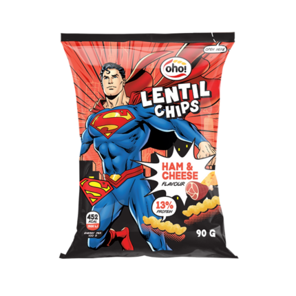 Σνακ από κόκκινες φακές με γεύση ζαμπόν και τυρί. Συστατικά: αλεύρι κόκκινης φακής (42%), καλαμποκάλευρο, κραμβέλαιο, ρυζάλευρο, μείγμα καρυκευμάτων (μαλτοδεξτρίνη, σκόνη κρεμμυδιού, φυσικές αρωματικές ύλες, αλάτι, εκχύλισμα μαγιάς, ηλιέλαιο, χρωστική ύλη (εκχύλισμα πάπρικας), μπαχαρικά), αλάτι. Μπορεί να περιέχει γλουτένη και γάλα.